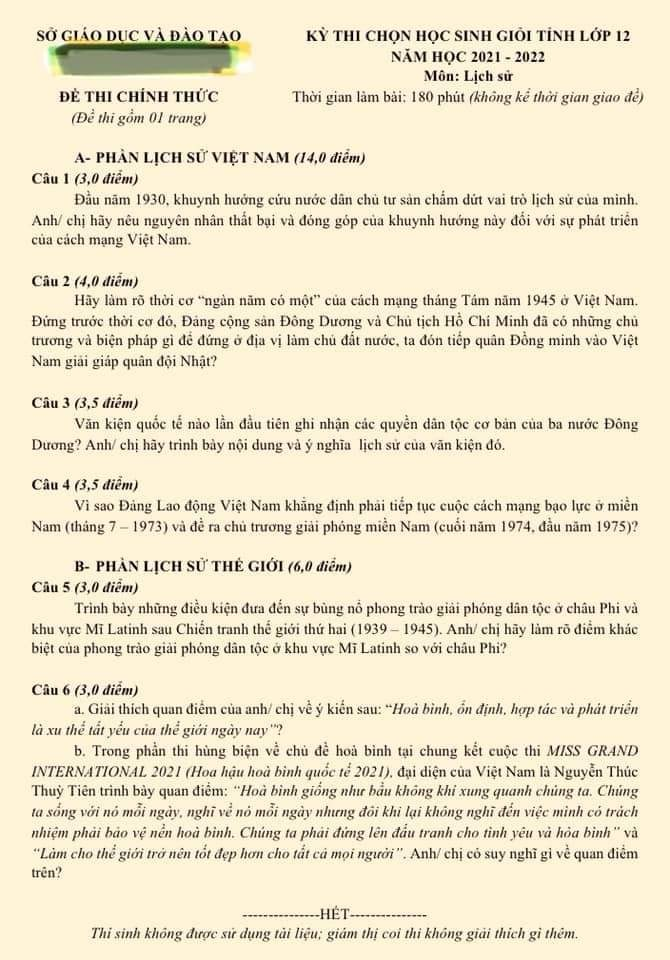 Mới đây, dân mạng bất ngờ phát hiện câu trả lời của Thùy Tiên trong phần thi hùng biện tại đêm Chung kết Miss Grand International 2021 trở thành câu hỏi trong một đề thi học sinh giỏi môn Lịch sử được chia sẻ trên mạng xã hội.