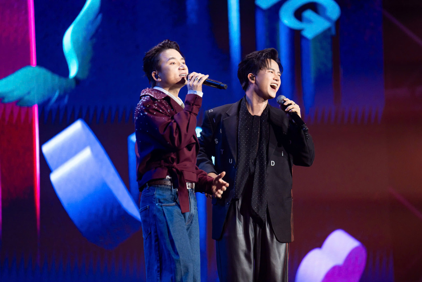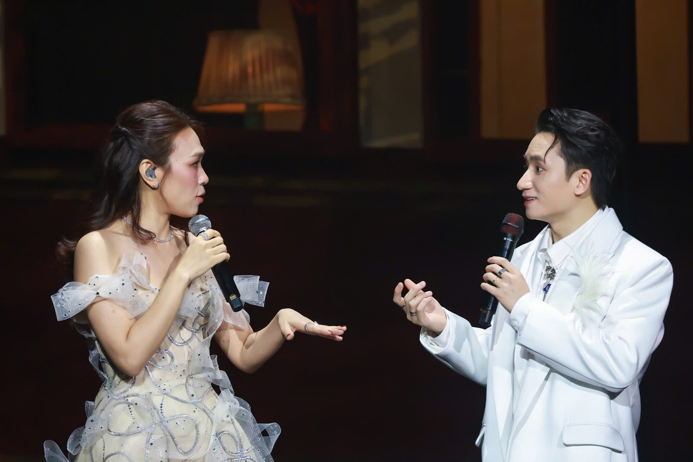 | Mỹ Tâm và Phan Mạnh Quỳnh có những màn tương tác thân thiết trong đêm nhạc. |