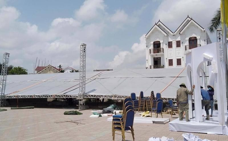 Từ đầu giờ chiều, địa điểm tổ chức lễ hôn phối đã thu hút sự quan tâm của nhiều người dân trong khu vực. Qua những bức ảnh hiếm hoi được đăng tải trên mạng xã hội, khán giả được thấy sự hoành tráng, đầu tư của nhạc sĩ trong ngày trọng đại.