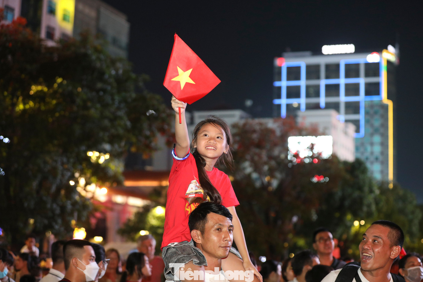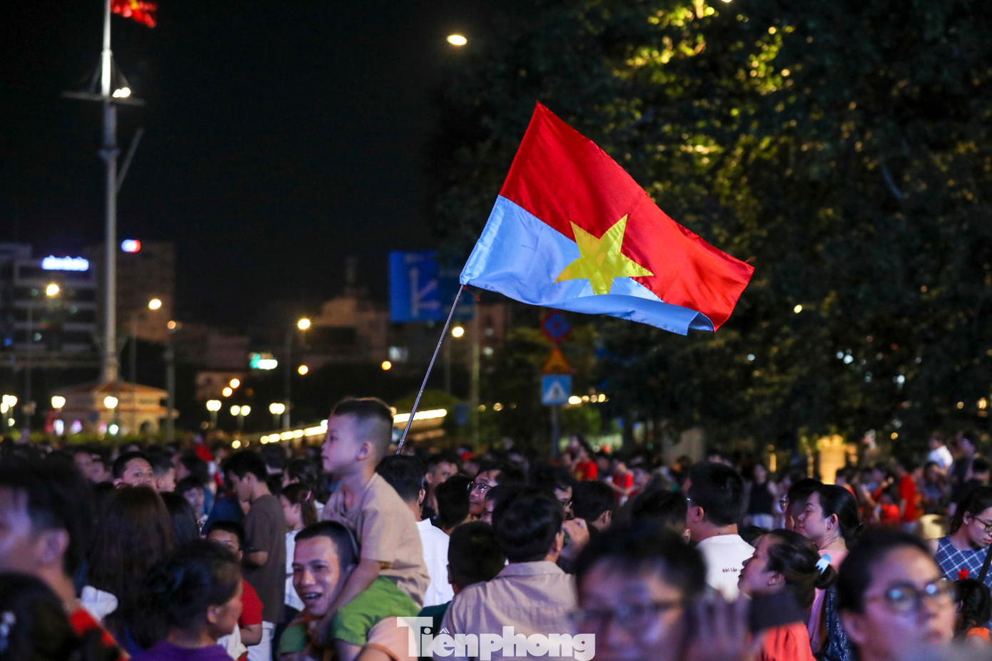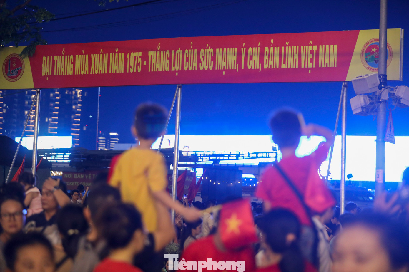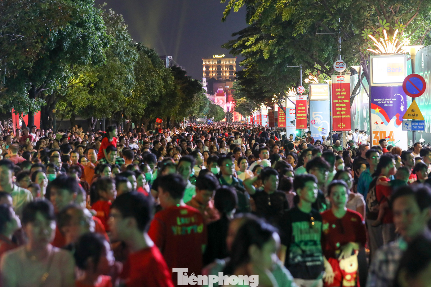 | Hàng nghìn người dân TPHCM đổ ra đường xem pháo hoa tối 19/4. Những vị trí đẹp ở gần khu vực bắn pháo hoa gần như không còn chỗ trống. |