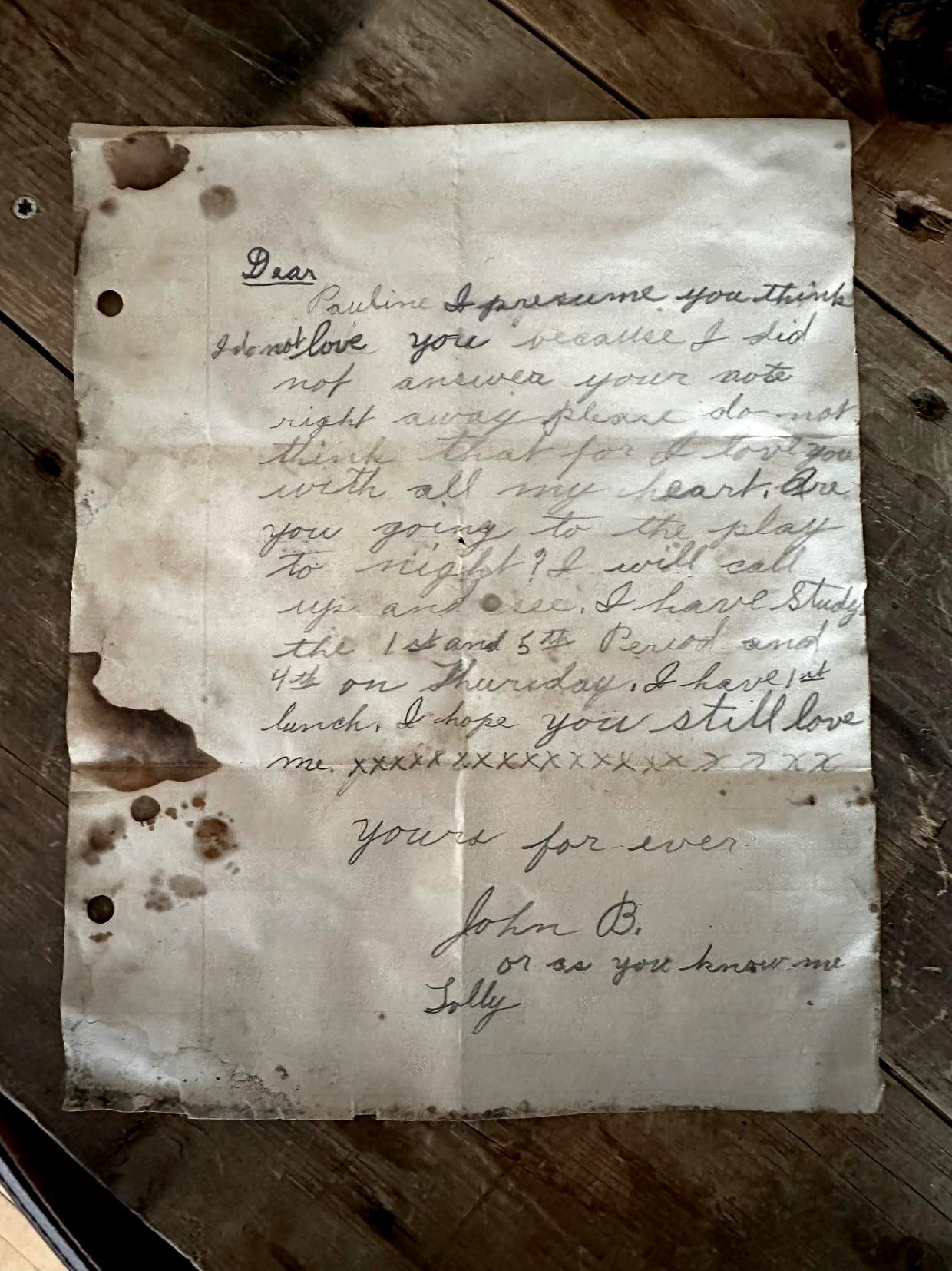 Cặp đôi cho biết, phát hiện thú vị nhất là một cặp thư tình dường như được viết bởi một cùng một người cho hai cô gái khác nhau. Những bức thư có ký tên “John B.” và gửi đến “Hazel” và “Pauline”. John B. bày tỏ tình yêu và tâm huyết của mình trong cả hai bức thư, đồng thời mời mỗi cô gái tham dự một buổi khiêu vũ với anh.