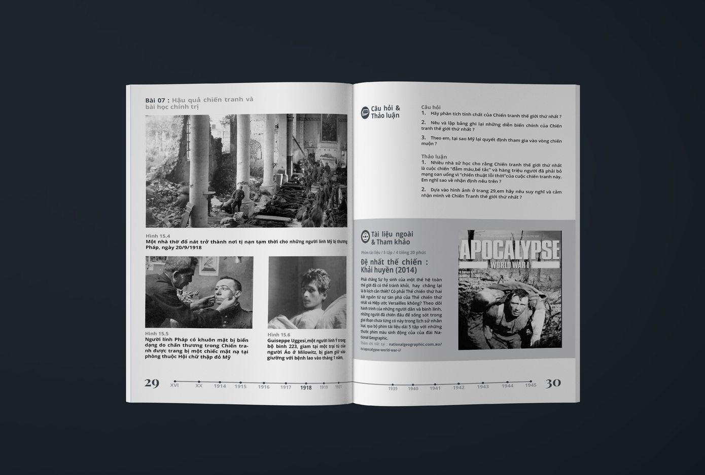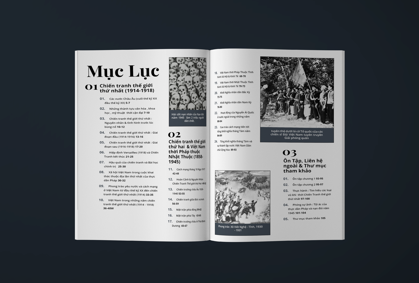 Với mong muốn giúp học sinh thêm hứng thú khi học Lịch sử, Phương Danh đã thực hiện dự án thiết kế lại cuốn sách Lịch Sử trong chương trình giáo dục phổ thông bằng cách sử dụng các phần mềm Indesign và Photoshop để dàn trang.