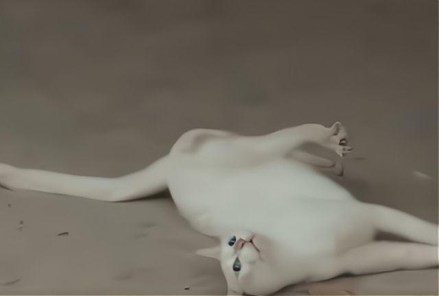 | Video do đoàn làm phim Đương Gia Chủ Mẫu đăng tải để thanh minh. Nhìn từ góc quay khác, có thể thấy chú mèo vẫn bình thường, đang nằm liếm máu giả trên mép. |
