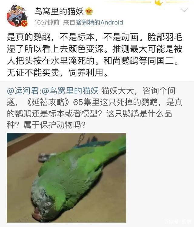 Rất may, ngay sau đó, đoàn phim Diên Hi Công Lược đã đăng tải video chú vẹt còn sống khoẻ mạnh, dập tắt tin đồn trên và chứng minh không có động vật bị hại trong quá trình quay phim.