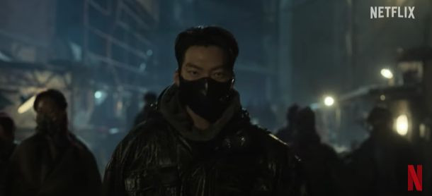 Teaser mới phát hành của Hiệp sĩ áo đen phần nào giới thiệu người xem một thế giới đen tối - nơi sinh tồn là trên hết. Nhân vật của Kim Woo Bin, 5-8, giải thích về vai trò của một hiệp sĩ áo đen, người mạo hiểm tính mạng để bảo vệ những chiếc xe tải giao hàng khỏi bọn săn trộm tài nguyên thiết yếu là oxy. Để tồn tại trong thế giới này, sức mạnh là điều không thể thiếu.