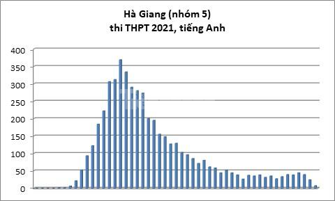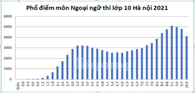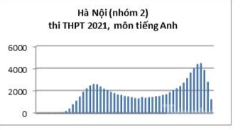 Một điều thú vị là hình dáng phổ điểm môn tiếng Anh chung toàn quốc năm nay cũng rất tương đồng với hình dáng phổ điểm môn thi tiếng Anh vào lớp 10 HN năm 2021: