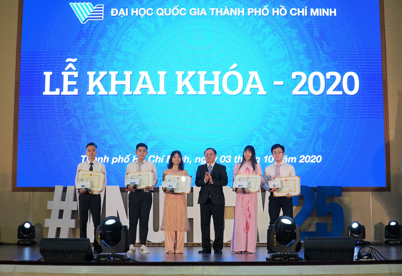 Ngày 3/10, Đại học Quốc gia TPHCM tổ chức Lễ Khai khóa năm 2020 với chủ đề “Tiên phong - Dẫn dắt - Nâng tầm quốc tế”. Đây là điểm mở đầu chuỗi các ngày hội chào năm học mới của các trường thành viên ĐHQG-HCM sẽ diễn ra trong tháng 10.