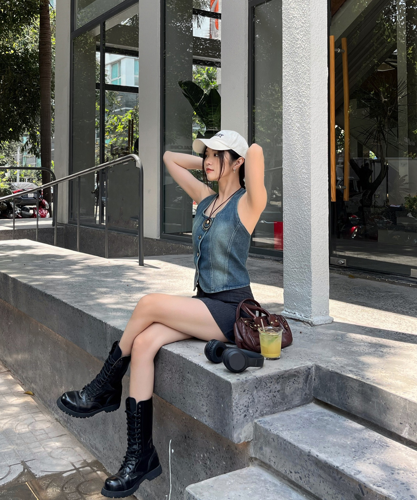 | Các item chất liệu cứng cáp, hầm hồ cỡ to khiến thân hình của Suni Hạ Linh mất cân đối. |