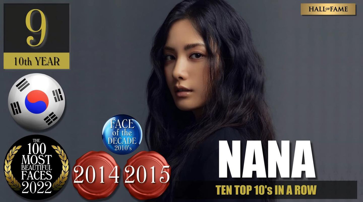 Nana (tên thật là Im Jin Ah, sinh năm 1991), được công chúng biết đến là thành viên nhóm nhạc After School. Nhan sắc của nữ nghệ sĩ từng là chủ đề bàn tán xôn xao trên các diễn đàn mạng xã hội. Dù từng dính nghi vấn phẫu thuật thẩm mỹ, ngoại hình của Nana vẫn được đánh giá cao, cô nhiều lần lọt top trong các BXH gương mặt đẹp nhất hành tinh. Nana từng lập kỉ lục khi là mỹ nhân Hàn đầu tiên giữ vị trí số 1 trên BXH sắc đẹp 2 năm liên tiếp.