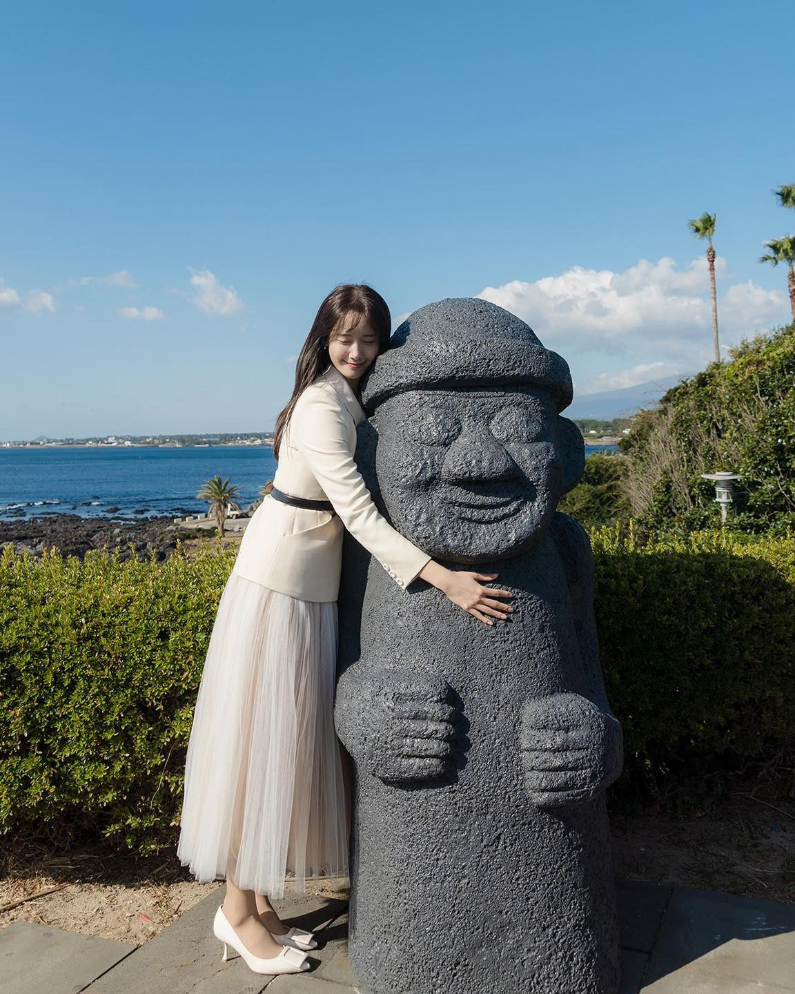Diện mạo sang trọng, thanh lịch của nữ diễn viên khi kết hợp chân váy tulle dài với áo blazer cùng tông trắng be. Chi tiết thắt lưng đen là điểm nhấn khiến tỉ lệ cơ thể của YoonA trở nên cân đối.