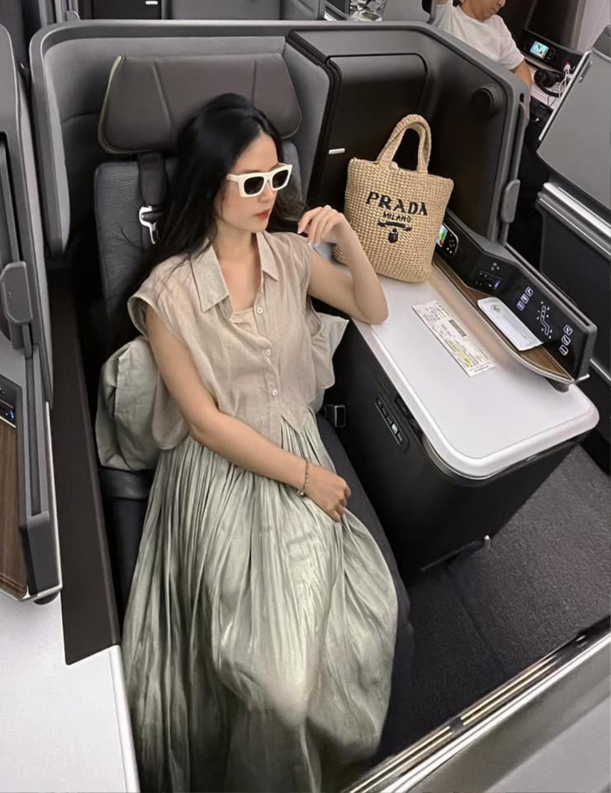 Dưới ống kính của ông xã Minh Đạt, mỹ nhân 35 tuổi trông xinh đẹp, trẻ trung trong các thiết kế tông màu trắng. Trong bức ảnh đăng kèm chú thích "Đi chơi vui quá, không muốn về!", Midu diện set đồ trắng với bra-top, quần soóc, áo sơ mi khoác ngoài kết hợp cùng loạt phụ kiện tông màu be. Phụ kiện túi cói Prada có giá hơn 40 triệu đồng từng xuất hiện trên trang cá nhân của Midu vào khoảng gần 1 năm trước, khi du lịch cùng bạn bè.