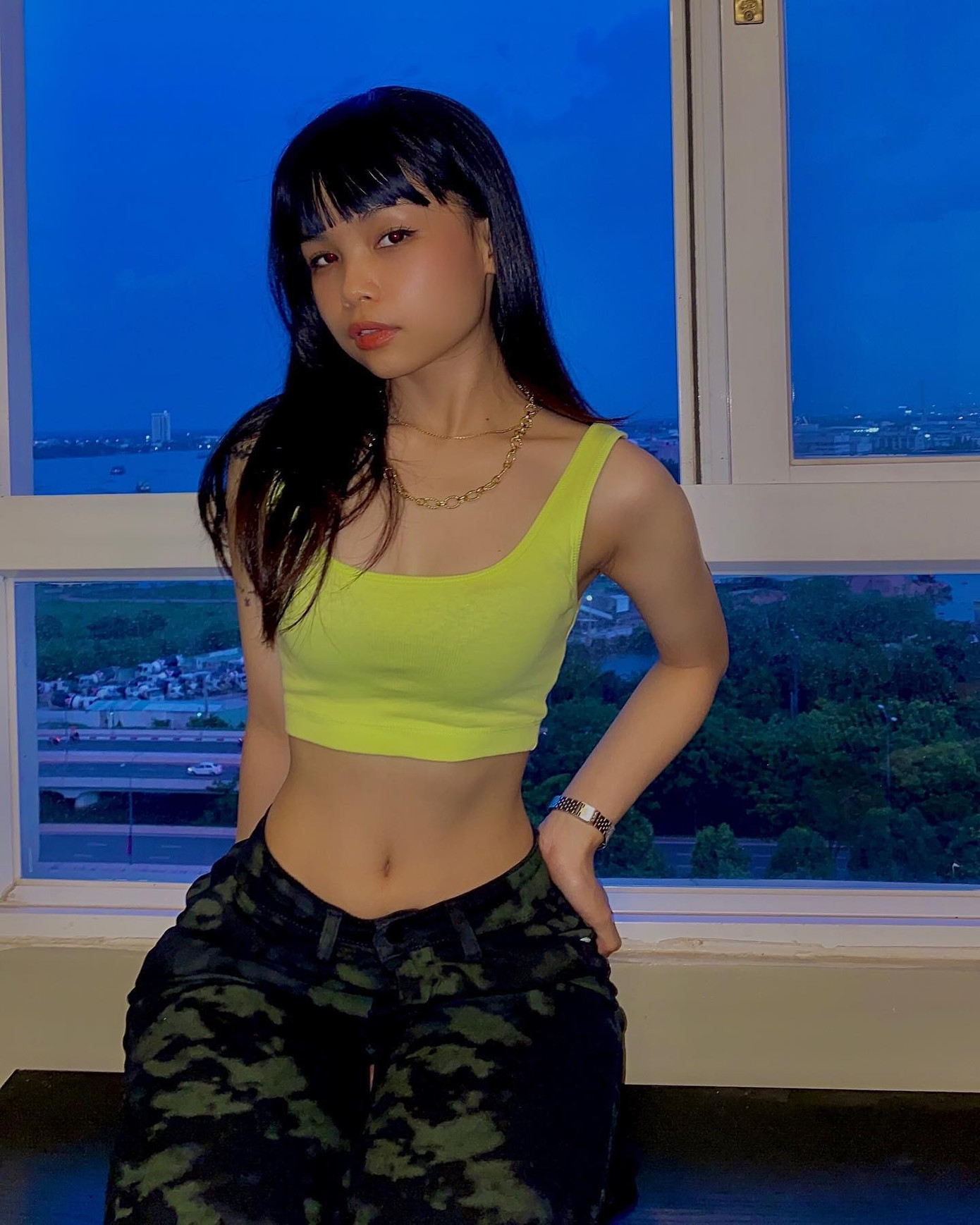 Sở hữu thân hình mảnh mai, nữ rapper chuộng những mẫu áo quây, crop-top khoe vòng eo “con kiến”. Cô nàng khéo léo phối quần jeans, quần ống hộp cùng phụ kiện kính mắt, vòng cổ, dây xích cá tính làm điểm nhấn.