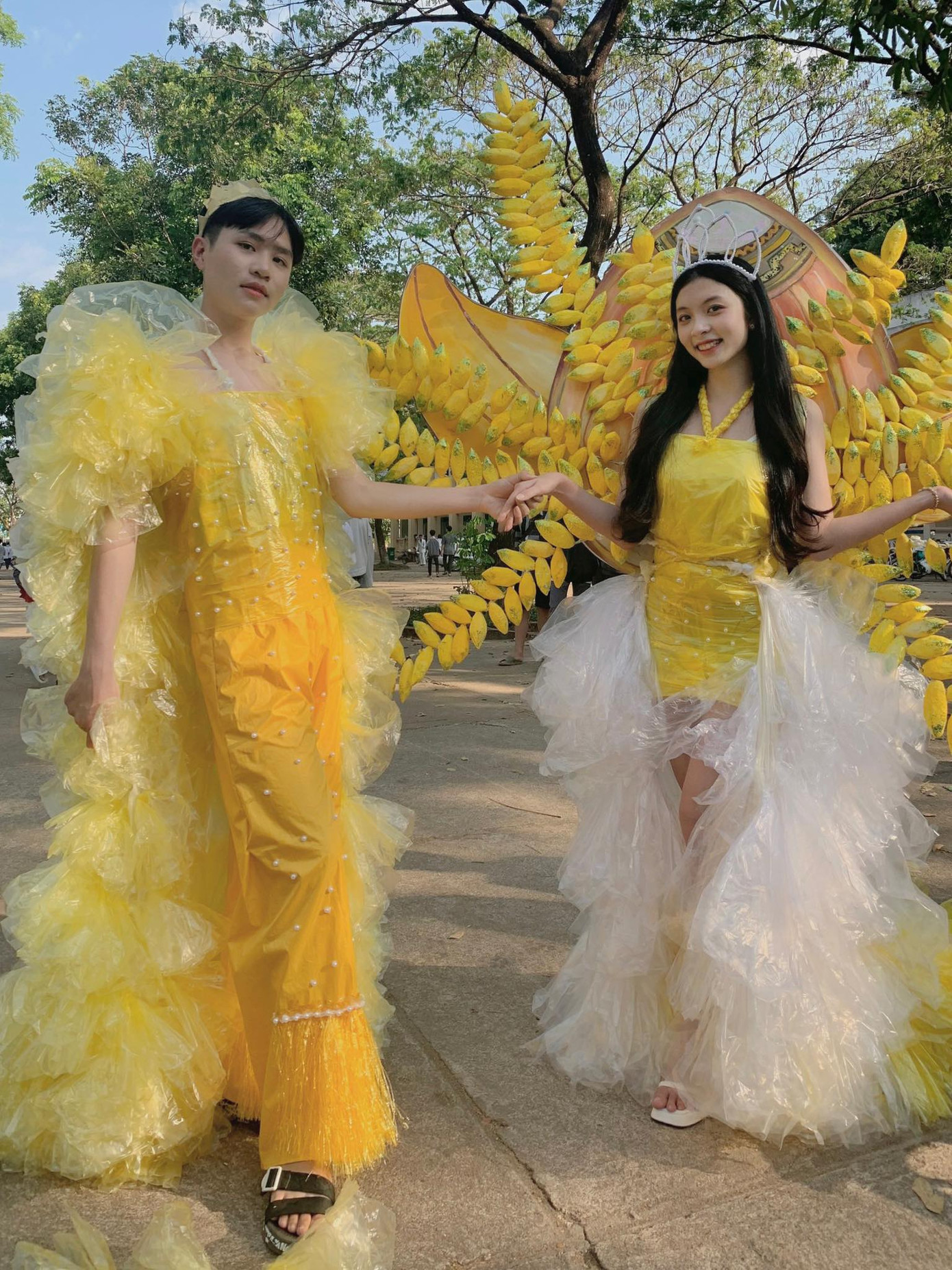 “Đặt vào một cuộc thi, người tham dự khắc sẽ có sự cạnh tranh, mong muốn sao cho tác phẩm của mình phải thật hoành tráng, công phu. Việc các bạn ưu tiên tính thẩm mỹ mà sử dụng các túi ni lông mới, nhiều màu sắc nhằm tăng khả năng đoạt giải là chuyện dễ hiểu”, Thảo Ly (sinh viên năm 2, Học viện Báo chí và Tuyên truyền) nhận định.