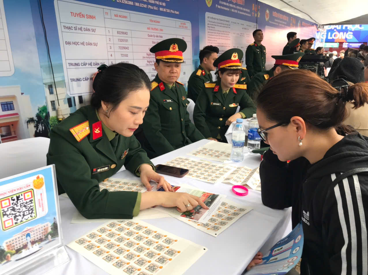 | Trao đổi với những thí sinh quan tâm tới khối trường quân đội. Ảnh: Đỗ Hợp |