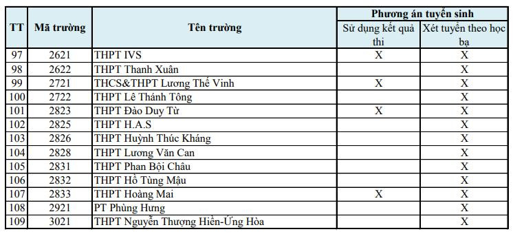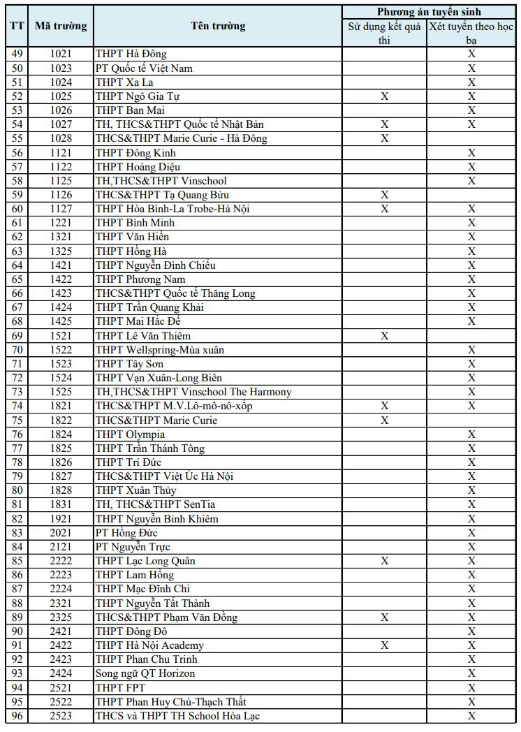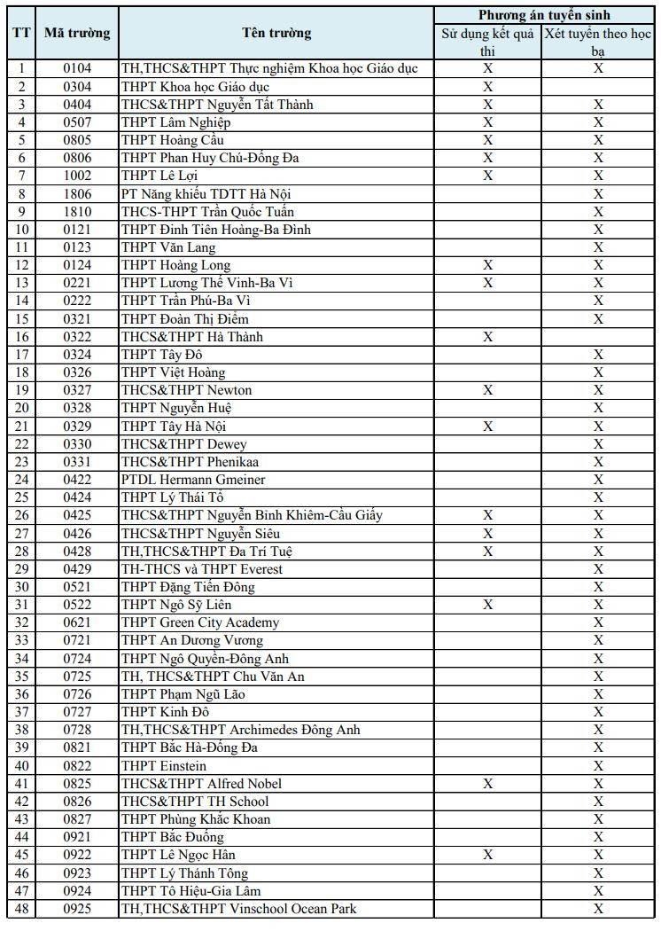 Mới đây, Sở GD&ĐT Hà Nội công bố phương án tuyển sinh vào lớp 10 của 109 trường THPT công lập tự chủ tài chính và trường THPT ngoài công lập năm học 2022 - 2023. Hầu hết các trường đều áp dụng phương thức xét tuyển học bạ cấp trung học cơ sở của học sinh để tuyển sinh.