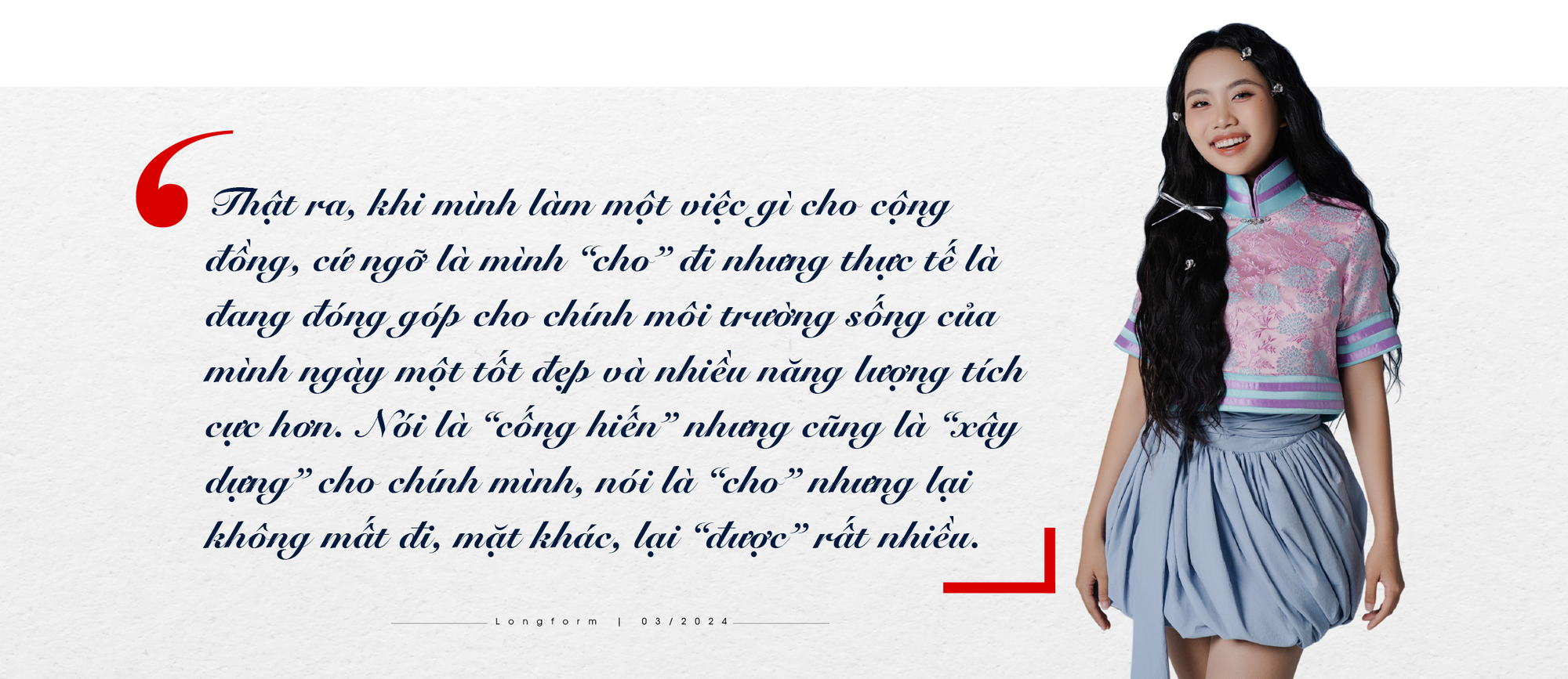 Nhiều người từng nghĩ gen Z thường thờ ơ với thời cuộc, nhưng nhìn vào những người trẻ như Phương Mỹ Chi điều đó hình như không đúng? Quan điểm của Chi về các hoạt động thiện nguyện, vì cộng đồng như thế nào? Liệu có khi nào bạn thấy áp lực khi là người nổi tiếng phải tham gia các hoạt động thiện nguyện?