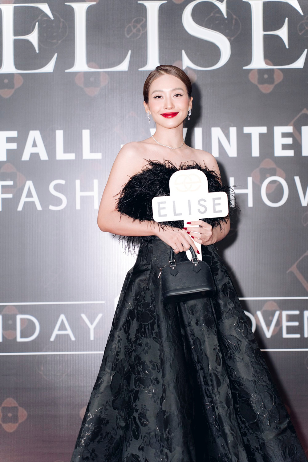 Trên thảm đỏ của Elise Fashion Show Fall/ Winter 2023, có lẽ nhiều người không nhận ra Khả Ngân trong tạo hình khác lạ này. Không còn là một Khả Ngân trẻ trung, sôi nổi với những bộ váy áo rực rỡ, nữ diễn viên có phần chững chạc trong mẫu váy đen đính lông vũ và layout trang điểm mới mẻ.