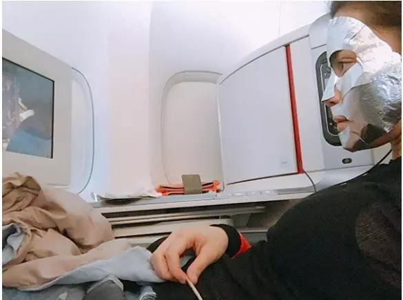 Không chỉ ô tô mà máy bay cũng là nơi được nhiều mỹ nhân Việt tranh thủ đắp mặt nạ, điển hình là Hồ Ngọc Hà.