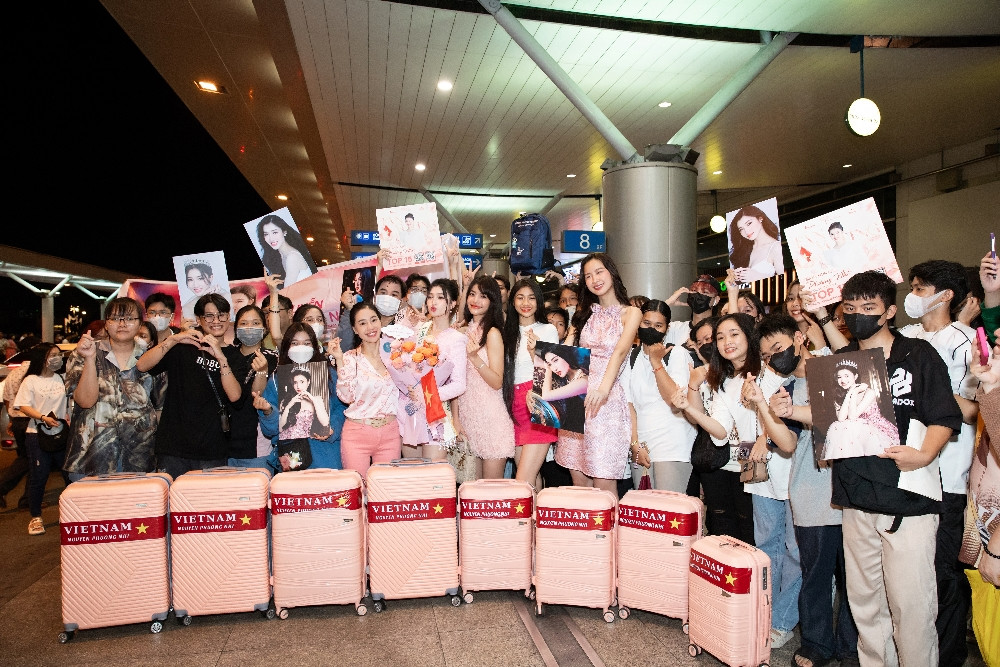 HHTO - Á hậu Phương Nhi đã chính thức lên đường sang Nhật Bản chinh chiến tại đấu trường Miss International 2023. Nàng hậu diện trang phục màu hồng, mang loạt vali hồng, những người đẹp tới tiễn Phương Nhi cũng mặc dresscode, mang đến hình ảnh vô cùng ngọt ngào tại sân bay.
