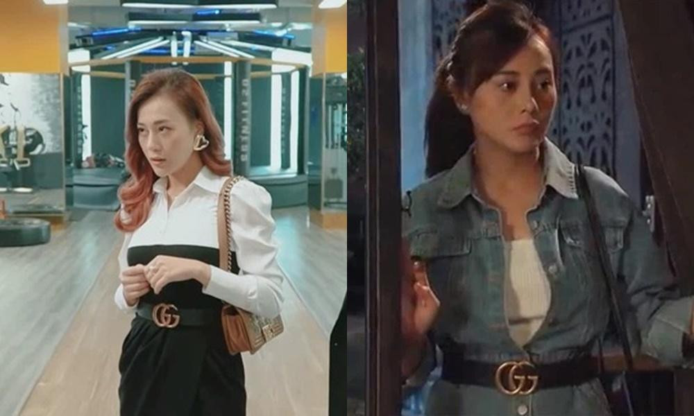 Nhưng sau khi nữ chính Phương Nam trở thành phu nhân tổng tài, tủ đồ của cô ngay lập tức cập nhật thêm rất nhiều món đồ hiệu và khán giả đã phát hiện ra có một vài thứ Phương Oanh dùng lại từ bộ phim trước. Chẳng hạn như chiếc thắt lưng Gucci này có vẻ là món phụ kiện Phương Oanh rất yêu thích khi cô lựa chọn để kết hợp với nhiều kiểu trang phục.