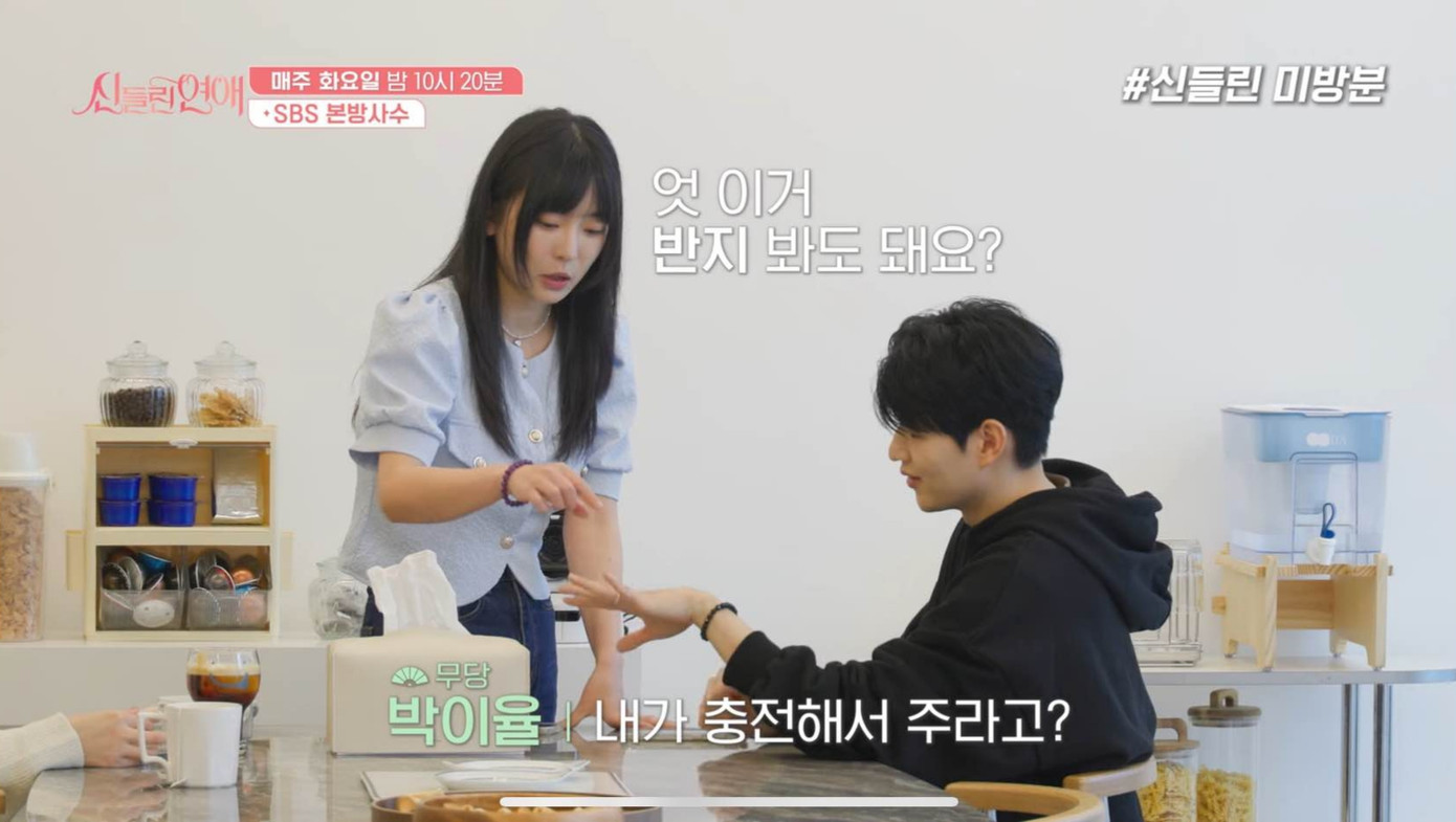 Tuy nhiên, nhà đài SBS đã "thả xích" những phân đoạn bị cắt trong tập 3 khiến "thuyền viên" cặp pháp sư - tarot reader phấn khởi trông thấy. Đoạn cắt dài hơn 3 phút hé lộ thêm nhiều khoảnh khắc "tình bể bình" giữa hai người chơi. Hóa ra Park I Yul không chỉ cho Hanna đeo chiếc nhẫn "vía" của mình, anh còn giúp cô "sạc" năng lượng cho chiếc vòng tay thạch anh của cô suốt buổi hẹn.