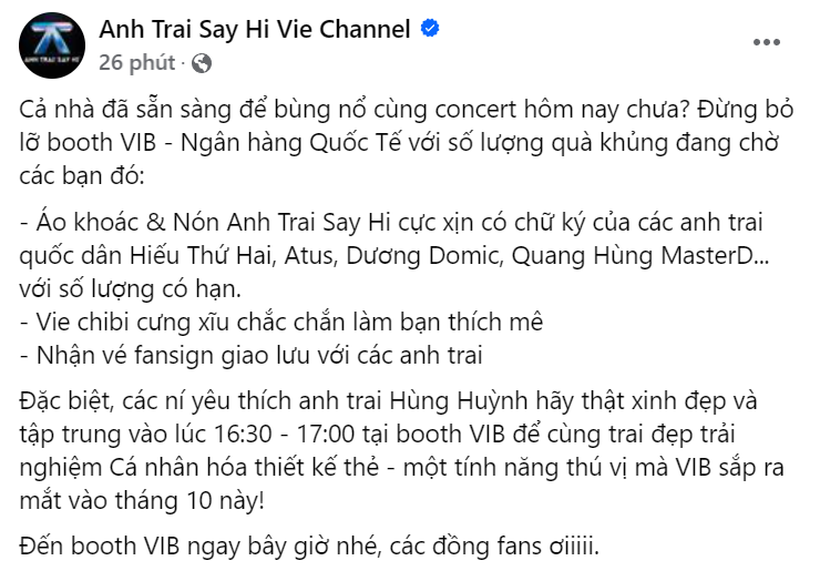 Concert Anh Trai "Say Hi" đang nóng hơn bao giờ hết khi từ trưa nay đã có hàng nghìn khán giả đứng xếp hàng chờ check-in vào cổng. Trên mạng xã hội, dân tình đang bàn tán sôi nổi về không khí và khâu tổ chức sự kiện này.
