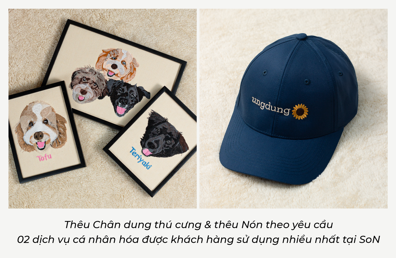 SoN mang đến nhiều dịch vụ chất lượng cao như sản phẩm thời trang thiết kế sẵn, sản phẩm thêu, in cá nhân hóa theo yêu cầu và đồng phục, quà tặng cho các doanh nghiệp.