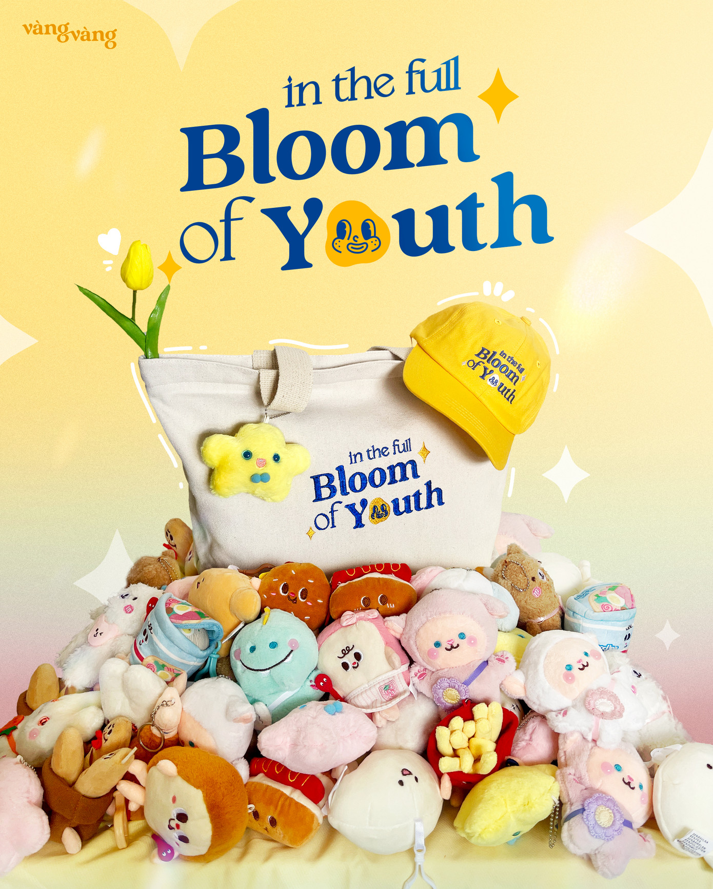 Hiện tại, nhà Vàng Vàng đang có bộ sưu tập mới là Blomm of Youth, bao gồm các sản phẩm như túi tote khổng lồ, móc khóa gấu bông... Đây là những item để bạn có thể dùng cho đi học, đi chơi, tặng “cạ cứng” hay crush của mình đó!