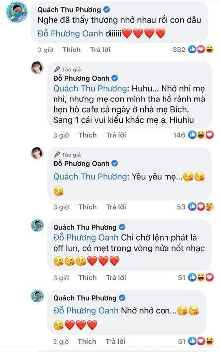 Sau bộ phim, Quách Thu Phương vẫn giữ mối quan hệ thân thiết với Phương Oanh. Cả hai thường xuyên gặp gỡ và dành nhiều lời có cánh cho nhau trên mạng xã hội. Ngoài Phương Oanh, Quỳnh Kool cũng xưng hô “mẹ-con” thân tình với mỹ nhân họ Quách.