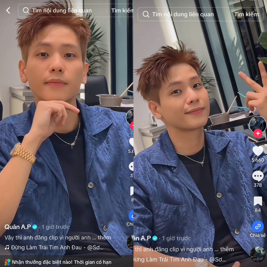 Trước vẻ ngoài khác lạ từ nam Kiện tướng dancesport, cư dân mạng liền nhớ đến trường hợp của ca sĩ Quân A.P. Bởi vừa qua, giọng ca Bông Hoa Đẹp Nhất đã khiến netizen không khỏi hoang mang khi bất ngờ thay đổi một số chi tiết trên gương mặt. Nam ca sĩ đã bọc hàm răng sứ trắng tinh, đều tăm tắp khiến khuôn miệng cười tự nhiên trước đó biến mất. Ngoài ra, có thể thấy gương mặt của anh cũng có nhiều thay đổi đáng kể, làm mất đi vẻ ngoài baby quen thuộc.