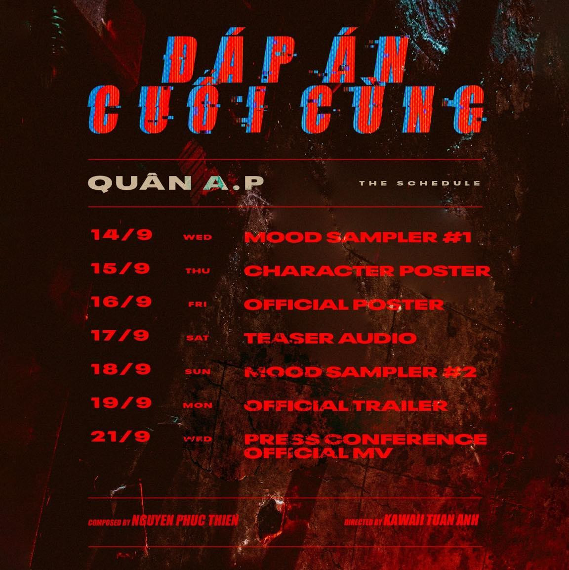 Mới đây, trên trang cá nhân, Quân A.P đã đăng tấm hình nam ca sĩ trong bộ đồng phục học sinh với nụ cười rạng rỡ, kèm theo đó là dòng thông báo “trở lại sau một kì nghỉ dài”. Bên cạnh đó, dưới bức ảnh còn có hashtag bí ẩn #dacc khiến netizen tò mò liệu đây có phải là tên bài hát mới của nam ca sĩ.