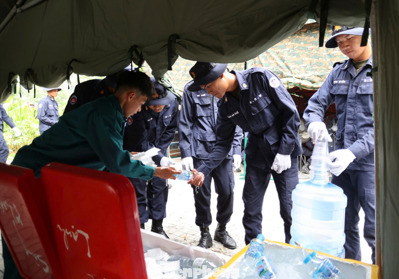 | Bất chấp nắng nóng, các chiến sĩ quân đội Lào và Campuchia luôn thể hiện tinh thần trách nhiệm và ý chí quyết tâm cao độ. |