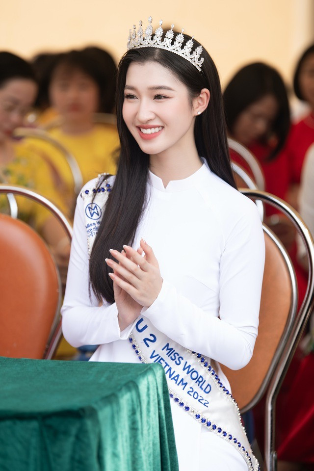 | Á hậu Phương Nhi từng về thăm trường cũ trong lễ khai giảng. |