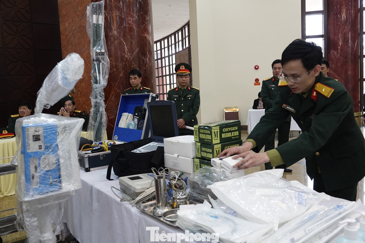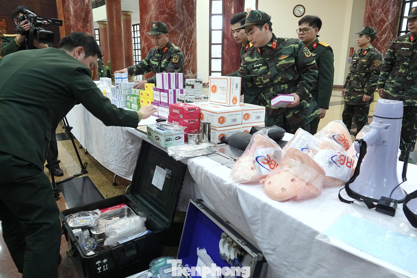 | Trung tướng Trần Duy Giang - Chủ nhiệm Tổng cục Hậu cần kiểm tra các loại vật tư y tế, thuốc men của lực lượng Quân y tham gia tới hỗ trợ Thổ Nhĩ Kỳ |
