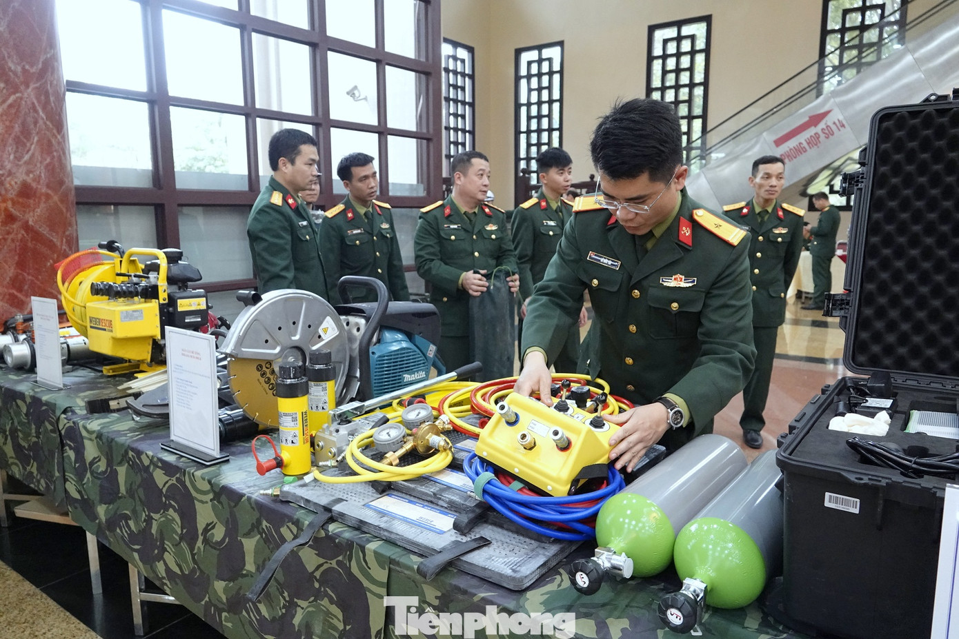 | Lãnh đạo Bộ Tổng tham mưu kiểm tra các trang thiết bị hỗ trợ tìm kiếm cứu nạn của lực lượng công binh |