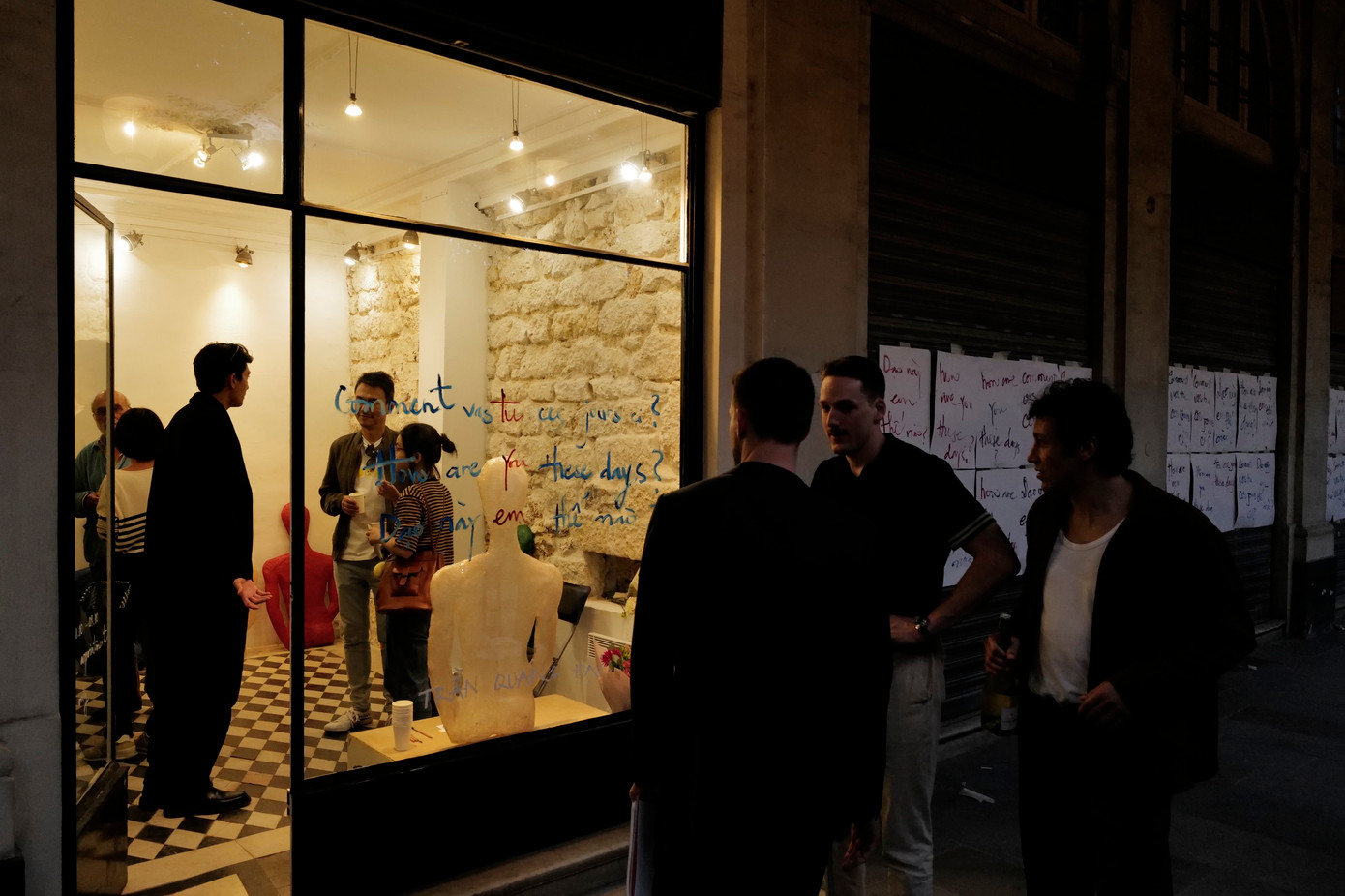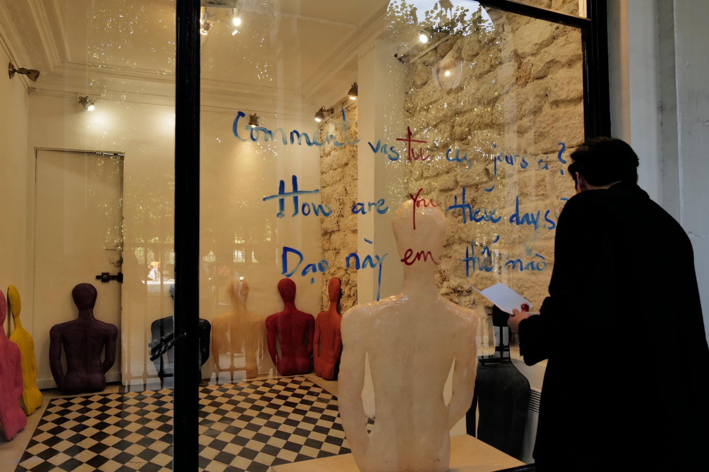 Với thông điệp tìm lại sự kết nối bằng một cuộc đối thoại, Quang Đại đã gây ấn tượng khi truyền tải ngay tại ô cửa kính lớn của phòng trưng bày với câu hỏi đầy ngọt ngào bằng cả 3 ngôn ngữ Pháp - Anh - Việt: “Comment vas-tu ces jours ci? How are you these days? Dạo này em thế nào?”.