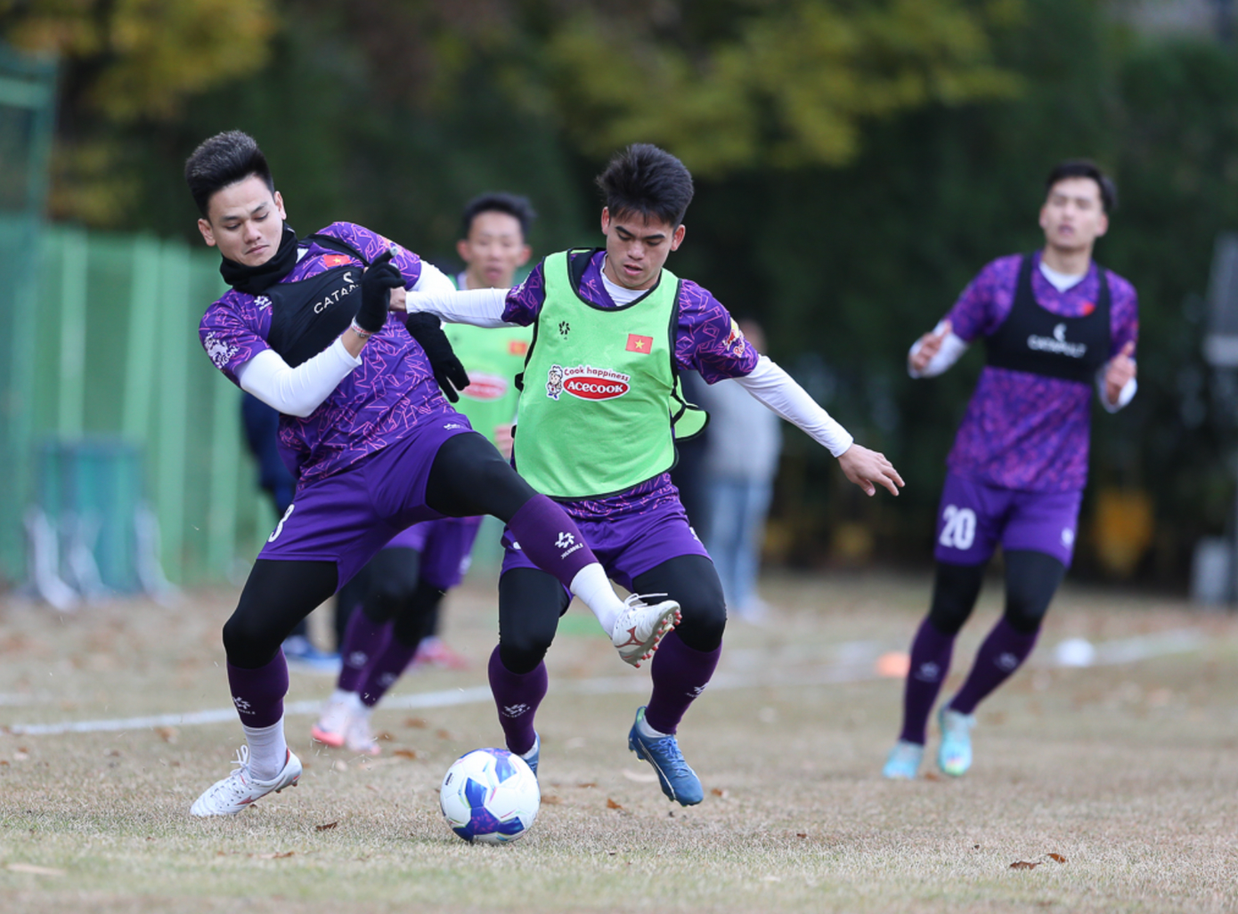 Trước đó trong buổi sáng, đội tuyển Việt Nam đã được cho rèn thể lực ở phòng gym nhằm tăng sức mạnh, cơ bắp. HLV Kim Sang-sik chỉ chuyển sang tập đấu pháp chiến thuật buổi chiều. Nhà cầm quân Hàn Quốc bắt đầu yêu cầu các học trò nâng khối lượng tập luyện theo giáo án.