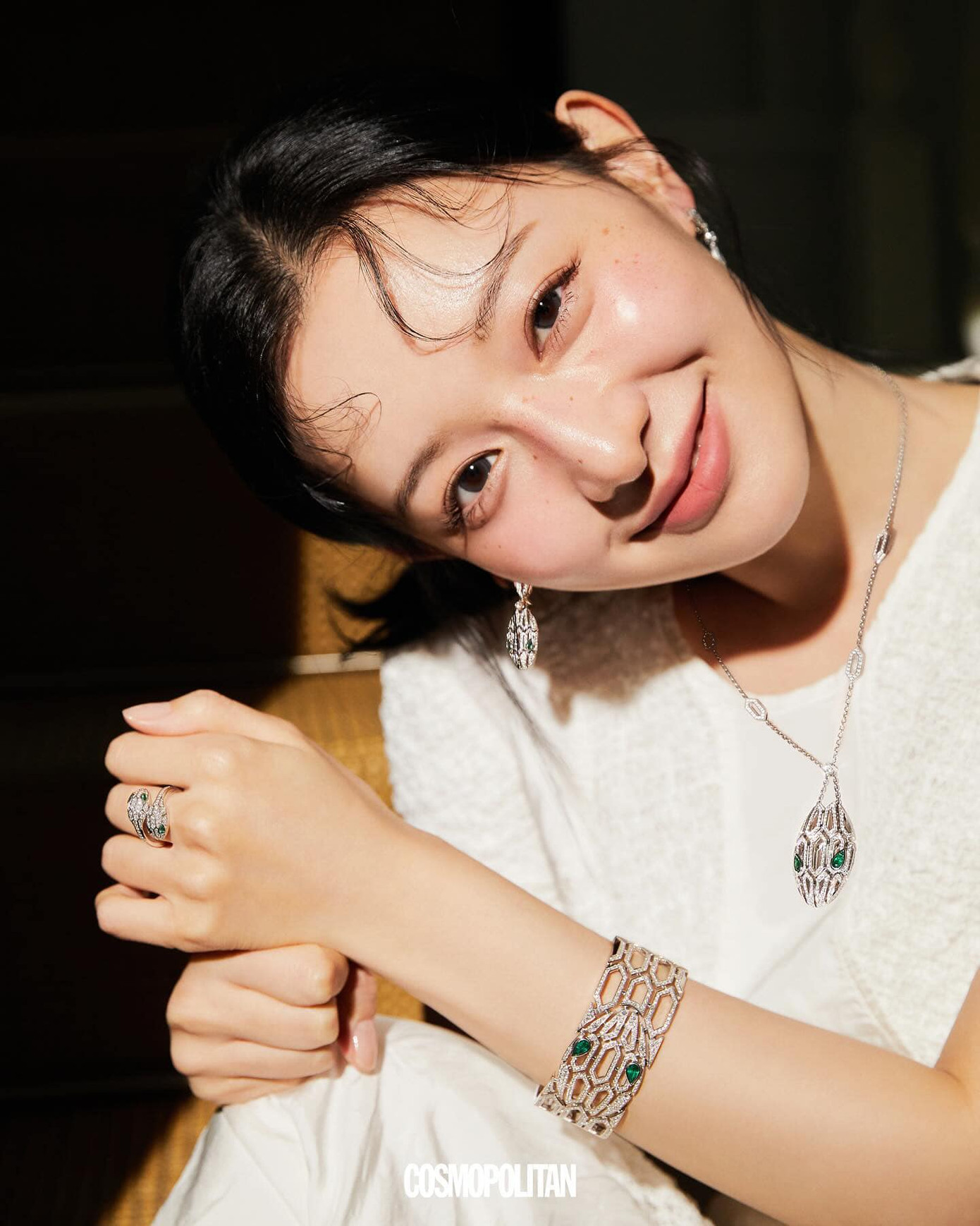 Kim Ji Won vừa trở thành người mẫu trang bìa tạp chí Cosmopolitan ấn bản Hàn Quốc số tháng 5 kèm theo loạt ảnh đầy trẻ trung, ngọt ngào đậm không khí mùa Hè. Khán giả cũng dễ dàng nhận ra Kim Ji Won đeo rất nhiều đồ trang sức của Bvlgari khiến nhiều người suy đoán cô sắp trở thành bạn thân hoặc đại sứ cho thương hiệu đình đám này.