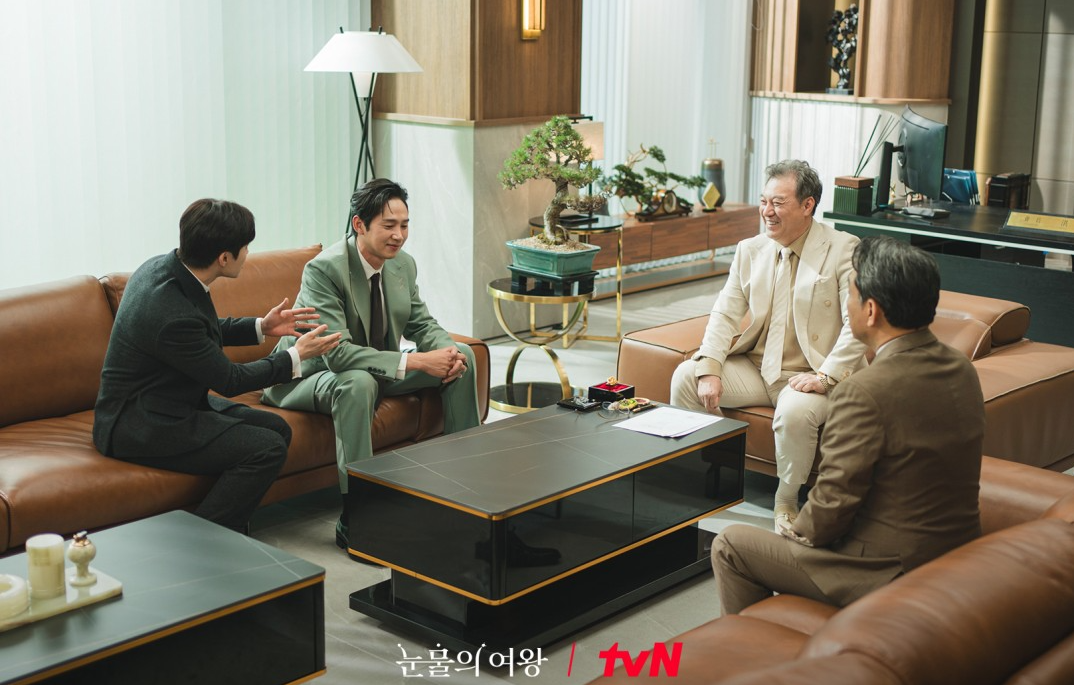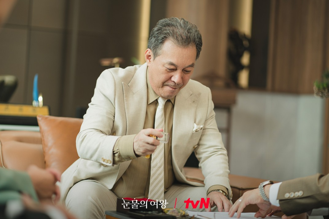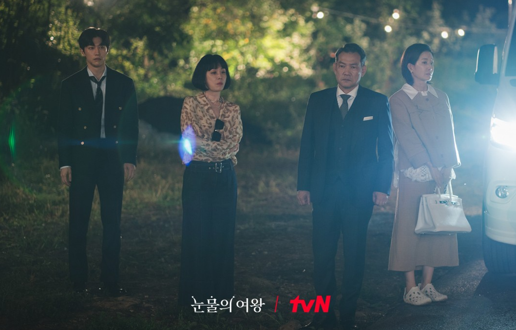 Queen of Tears thuộc thể loại rom-com (hài, lãng mạn), không phải dạng phim tập trung vào trả thù, tranh giành quyền lực, nên những chi tiết về phe phản diện cũng được nhắc rất nhẹ, đôi khi nó chỉ là nền để làm bật lên tuyến tình cảm của cặp đôi chính Baek Hyun Woo (Kim Soo Hyun) và Hong Hae In (Kim Ji Won). Nhưng biên kịch và đạo diễn vẫn cài cắm những ẩn ý xuyên suốt để người xem có thể nắm bắt.