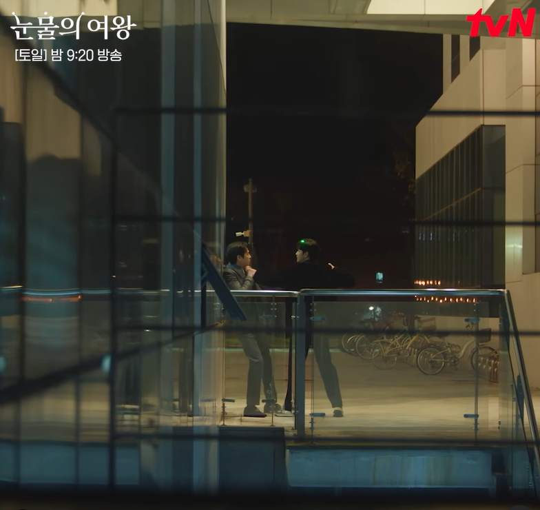 Dựa vào trang phục của Yoon Eun Sung thì bối cảnh giống như anh bước ra từ họp báo, nhưng quần áo của Baek Hyun Woo lại không đồng nhất với phân đoạn đó. Hai người gặp nhau ở hành lang.
