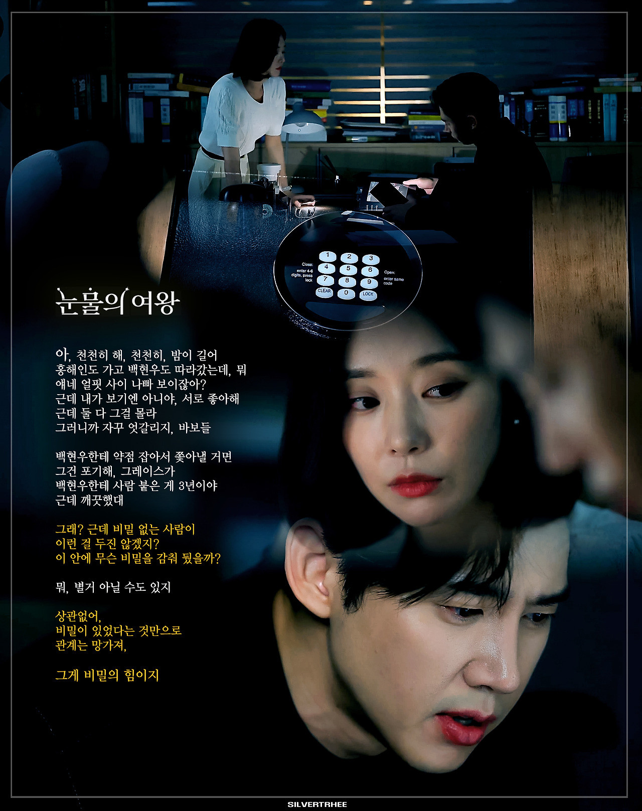 Queen of Tears tập 6 cũng cho thấy những bước đi rõ hơn của phe phản diện. Không chỉ người nhân viên spa thảo mai, mà tới thư ký của Hyun Woo cũng là tay sai của họ. Yoon Eun Sung (Park Sung Hoon) và Cheon Da Hye (Lee Joo Bin) - vợ của Hong Soo Cheol (Kwak Dong Yeon) cũng biết nhau từ nhỏ tại cơ sở chăm sóc trẻ mồ côi.