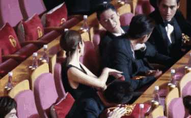 Khi các nghệ sĩ yên vị trong khán phòng, netizen còn phát hiện một khoảnh khắc đáng nhớ khác. Lý Hiện đang say sưa kể chuyện, Dương Tử ngả người về phía bạn diễn lắng nghe chăm chú. Và sau đó, khán giả mới biết rằng ở giữa cặp đôi chính phim Quốc Sắc Phương Hoa còn có nam diễn viên Trương Nhược Quân. Vậy là anh đã bị biến thành "bóng đèn" chính hiệu, phải ngả người về phía sau để Dương Tử và Lý Hiện nói chuyện cho thoải mái.