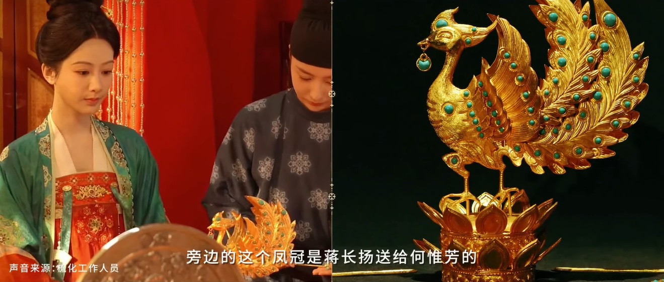 Thậm chí trên phim có cảnh Tưởng Trường Dương tặng cho Hà Duy Phương chiếc vương miện hình phượng hoàng. Món trang sức này chỉ xuất hiện trên màn ảnh chừng 1 giây nhưng đoàn làm phim tốn hơn một tháng chế tác để thật tinh xảo, đẹp đẽ.