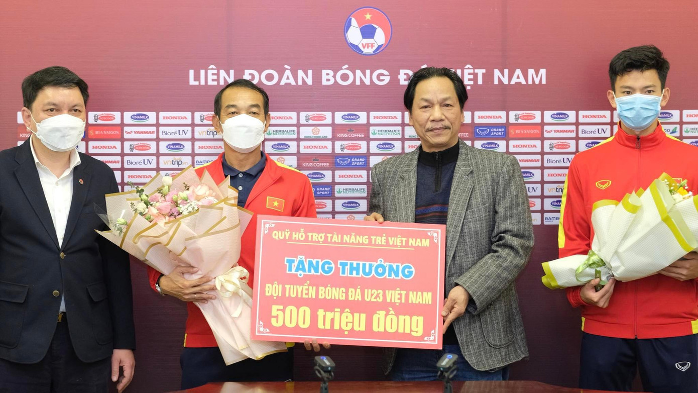 Với chiến tích này, Quỹ hỗ trợ tài năng trẻ Việt Nam đã quyết định tặng thưởng 500 triệu đồng cho đội tuyển U23 Việt Nam. HLV Đinh Thế Nam và hậu vệ Phan Tuấn Tài đã thay mặt toàn đội nhận phần thưởng tại trụ sở VFF chiều nay.