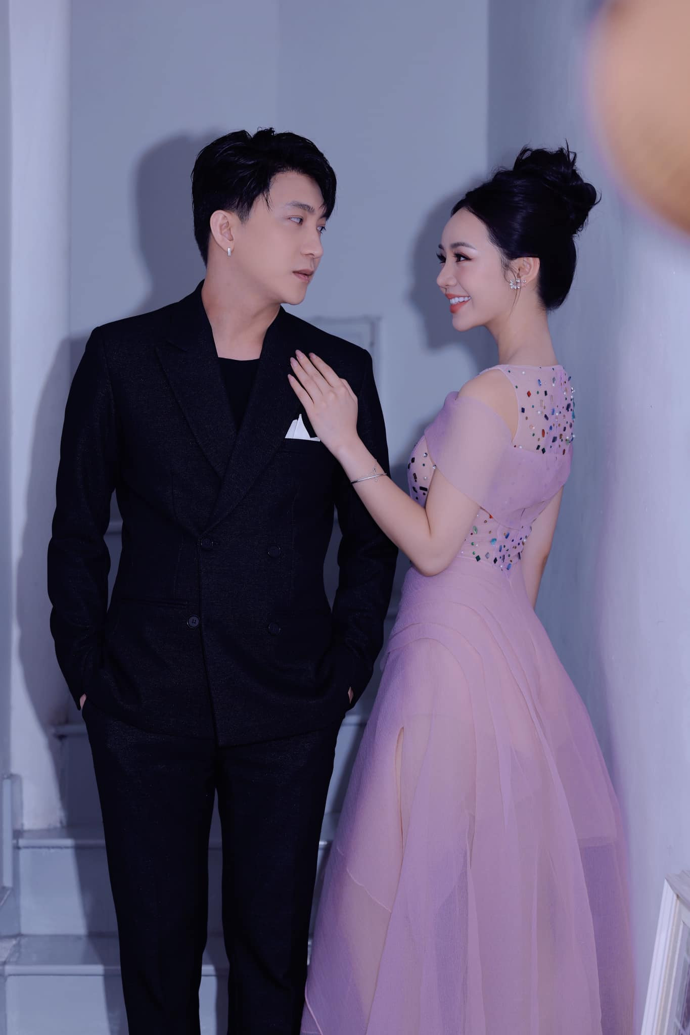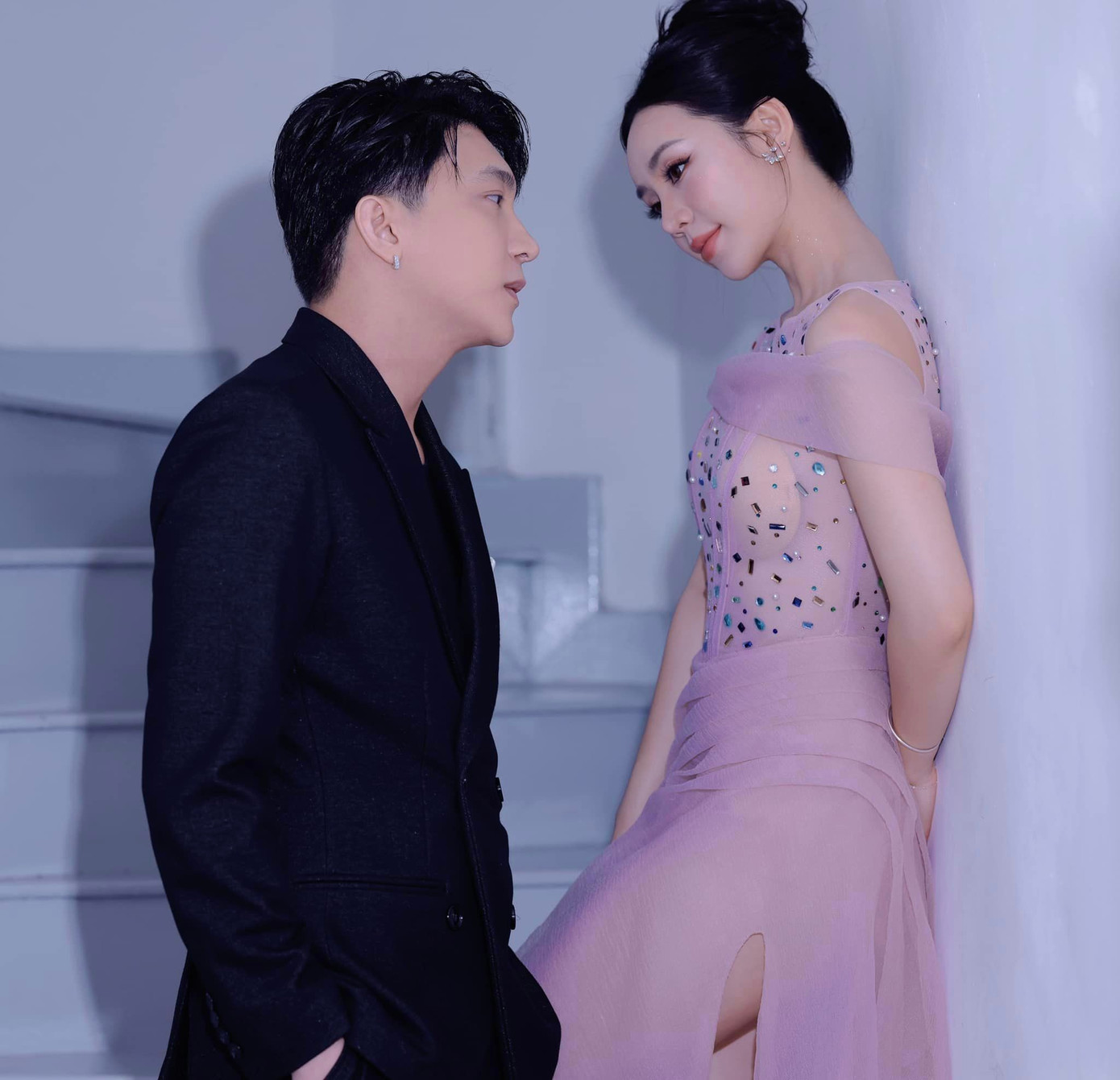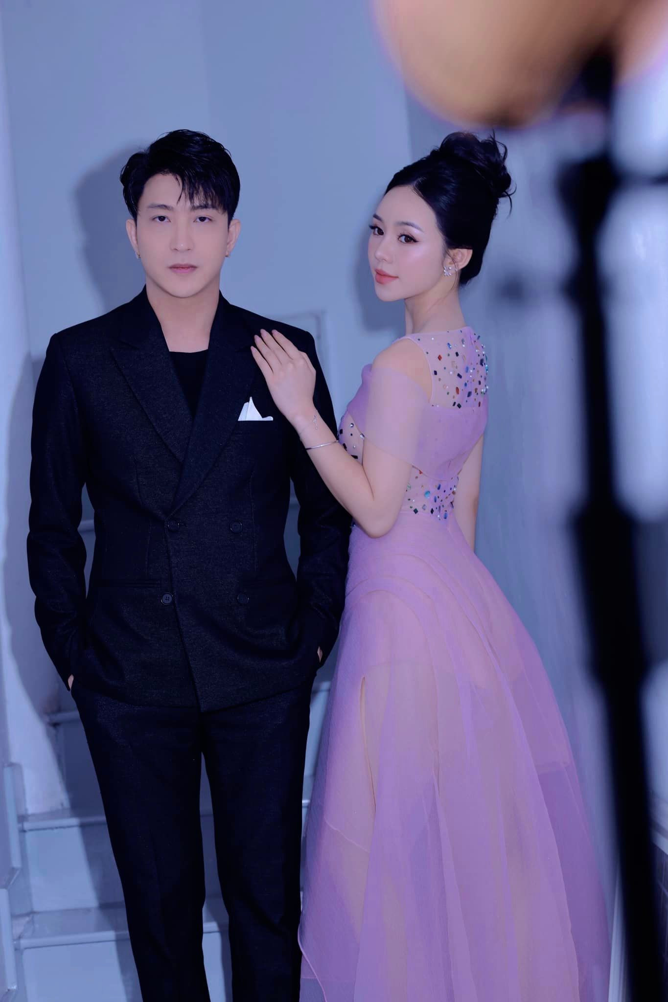 B Trần cùng Quỳnh Kool cũng rất chịu khó chụp ảnh đôi. Bên cạnh bộ ảnh cưới, hai người còn tung ra loạt ảnh đầy sang chảnh. Trong khi B Trần lịch lãm với bộ vest đen thì Quỳnh Kool lại dịu dàng trong bộ váy tím đính đá lấp lánh.