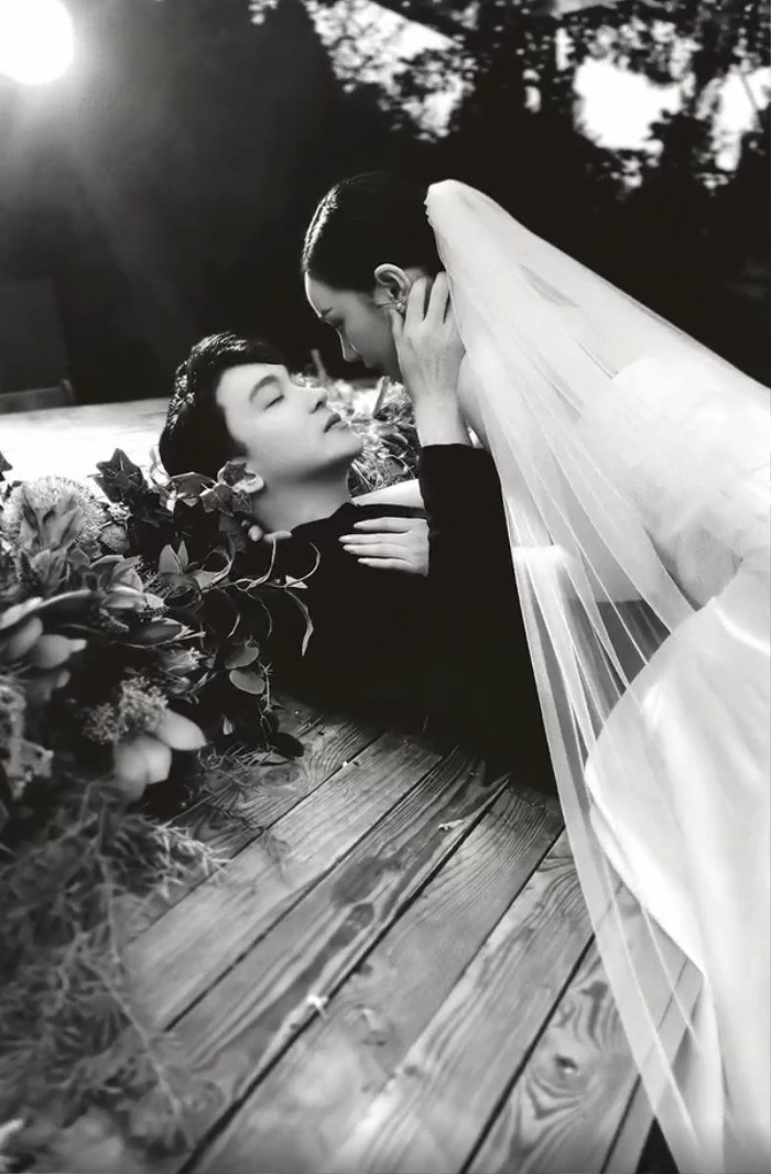 Trên trang cá nhân, Quỳnh Kool đã hé lộ hậu trường buổi chụp ảnh cưới cho phim. Tuy chỉ là chụp trong studio, trang phục cũng không cầu kỳ nhưng B Trần, Quỳnh Kool vẫn vô cùng nổi bật. Cả hai đều có ngoại hình đẹp nên dù lần đầu đóng chung, vẫn tạo nên một cặp đôi sáng bừng khung hình.