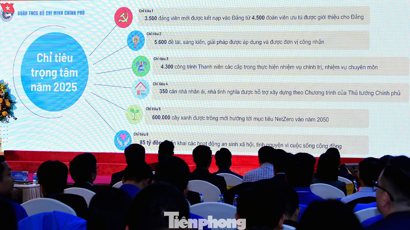 Đoàn Thanh niên Chính phủ quyết tâm thực hiện 6 chỉ tiêu trọng điểm. Trong đó, phấn đấu kết nạp 3.500 đảng viên mới; 5.600 đề tài, sáng kiến, giải pháp được áp dụng trong tham mưu chính sách, kinh doanh, dịch vụ, lao động sản xuất và nghiên cứu khoa học được cấp ủy, lãnh đạo đơn vị công nhận; 4.300 công trình thanh niên các cấp; 350 nhà tình nghĩa, nhà nhân ái; 600.000 cây xanh được trồng mới; 85 tỉ đồng triển khai các hoạt động an sinh xã hội, tình nguyện vì cộng đồng.