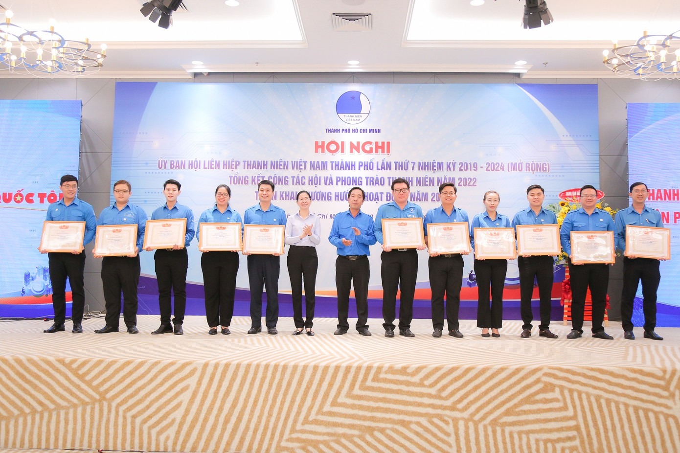 | Trong Hội nghị tổng kết Hội LHTN Việt Nam TPHCM lần thứ 7, hội nghị đã hiệp thương bầu bổ sung nhân sự và khen thưởng các đơn vị, cá nhân đạt thành tích cao trong công tác Hội và phong trào thanh niên của thành phố năm 2022. |