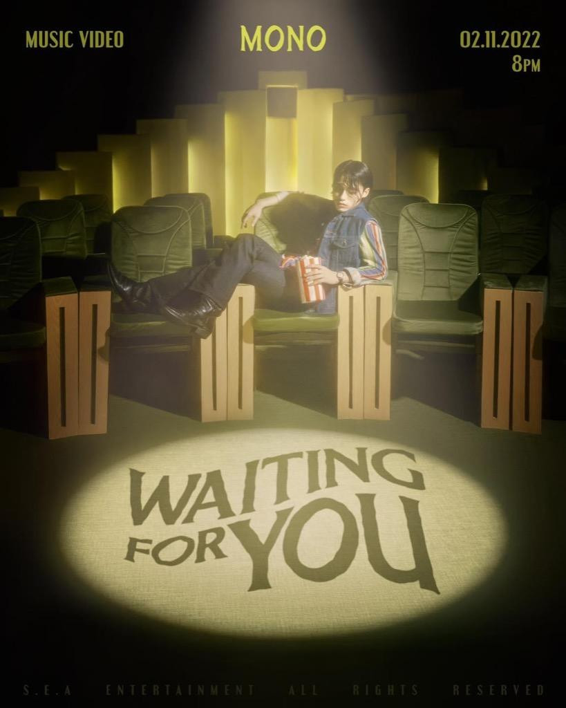 Trước đó, MONO cũng đăng tải tấm poster đầu tiên của dự án Waiting For You. Trong khung cảnh của một rạp phim, MONO đang ngồi tận hưởng những khoảnh khắc với ánh đèn được chiếu thẳng xuống phía dưới sàn nhà cùng dòng chữ “Waiting For You”.