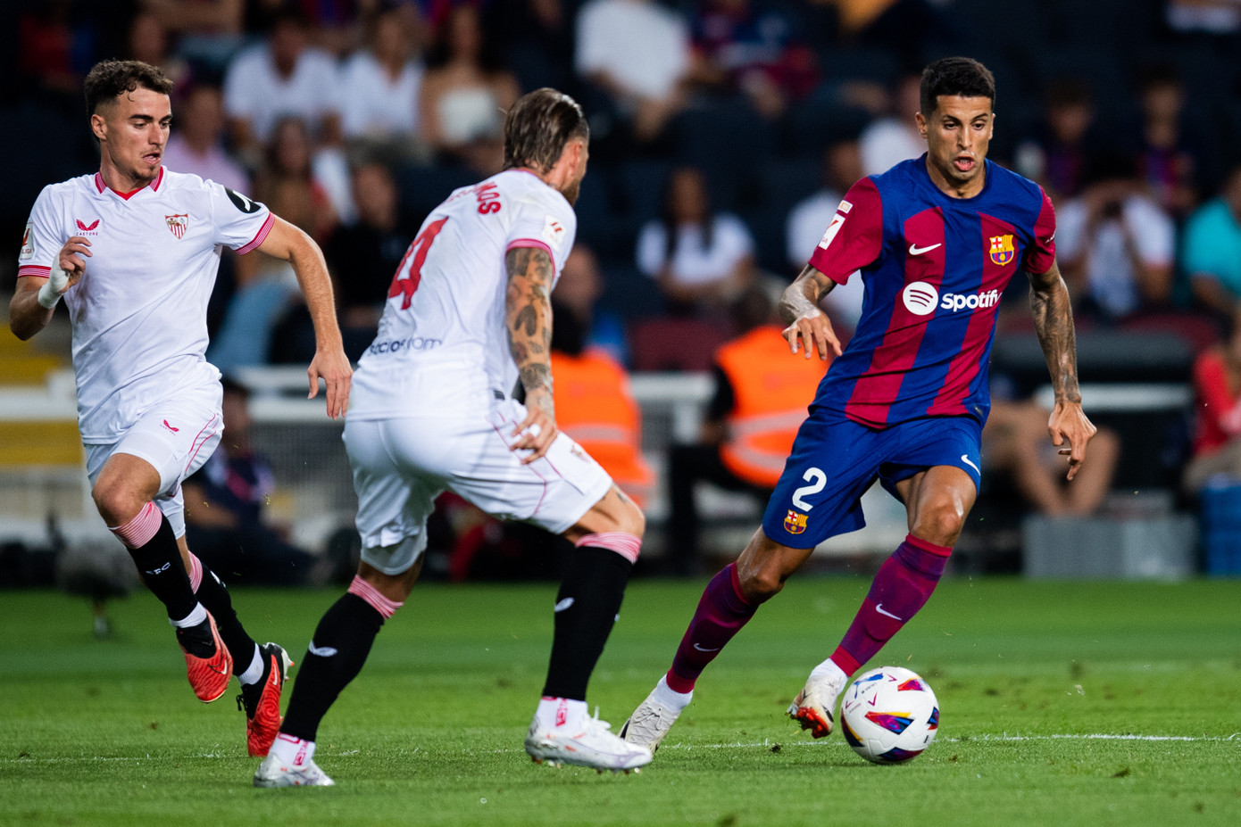 Phút 21, hậu vệ Joao Cancelo "Tả xung hữu đột" trong vòng vây 3 cầu thủ Sevilla, sau đó là đường chuyền thuận lợi để Felix dứt điểm nhưng đáng tiếc là bóng đi trúng xà ngang. Sevilla đáp trả với cú đá trong vòng cấm của Lucas Ocampos ở phút 30, cầu thủ người Argentina đòi phạt đền khi anh cho rằng Gavi để bóng chạm tay, pha quay chậm cho thấy bóng đã chạm vào vai của Gavi. Phút 38, Fermin Lopez xoay người khéo léo trong vòng cấm Sevilla nhưng cú sút đi quá nhẹ.